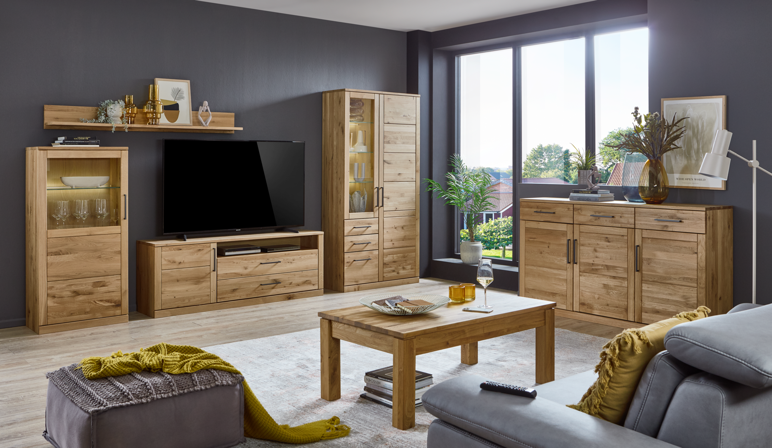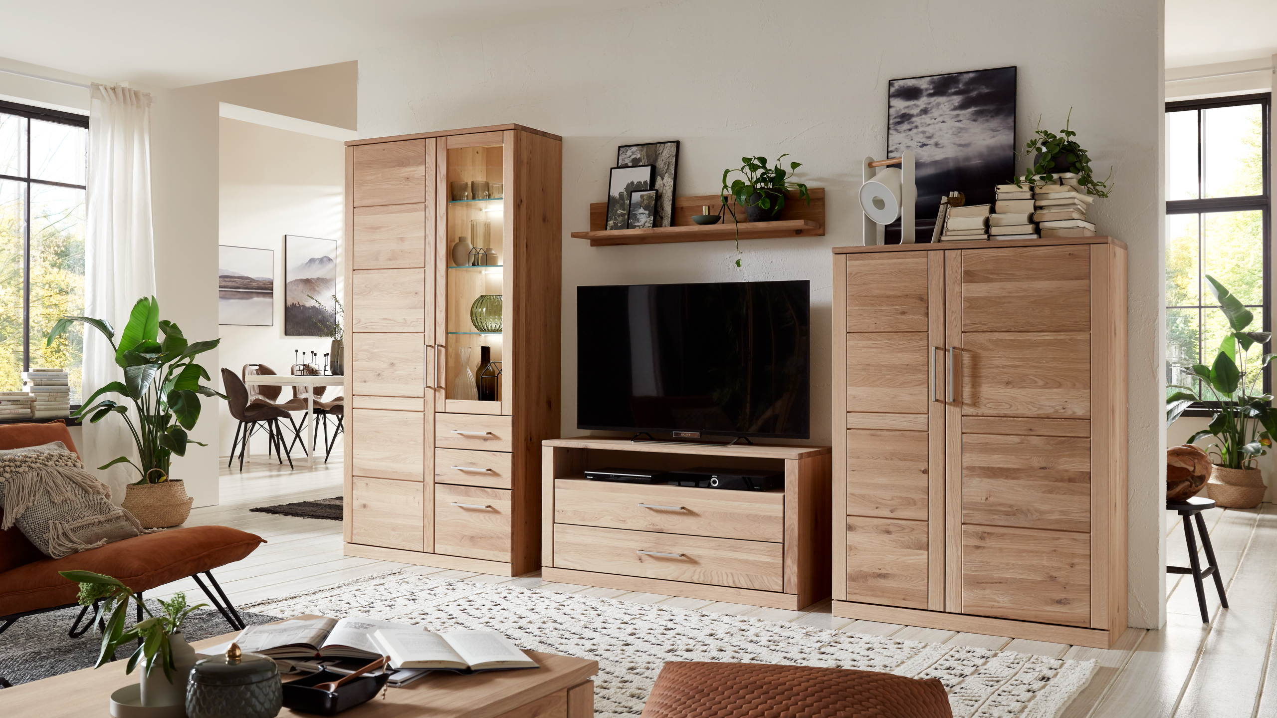Das Möbelprogramm Ambiente ist in den Holzarten Kernbuche, Wildeiche Natur und Wildeiche bianco lieferbar. Das vielseitige Naturholzprogramm ist ideal für den Wohn und Essbereich – auch Sonderanfertigungen sind immer möglich. Das Holz aus nachhaltiger Forstwirtschaft sorgt für ein gesundes und angenehmes Raumklima.